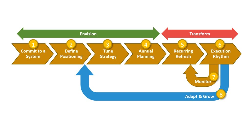 8) Adapt and Grow by monitoring the environment or Context in which your company competes to ensure Positioning and Strategy remain effective.